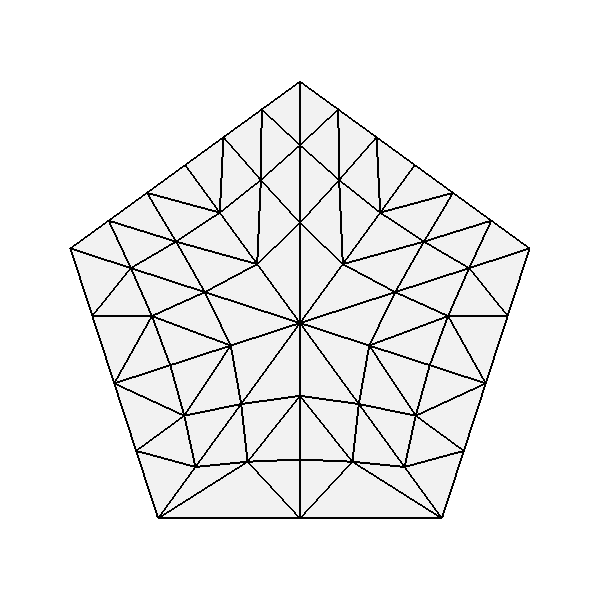 | Non-uniform tessellation of a quadrilateral, triangle and 5-sided face with various outer and inner rates. | |