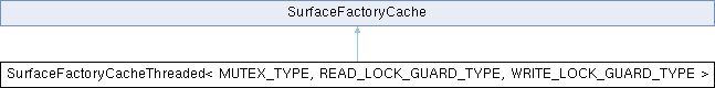 SurfaceFactoryCacheThreaded extends SurfaceFactoryCache by protecting access to the cache to ensure thread-safe operation. A mutex type and associated locks are specified to declare a subclass with appropriately protected read and write access.