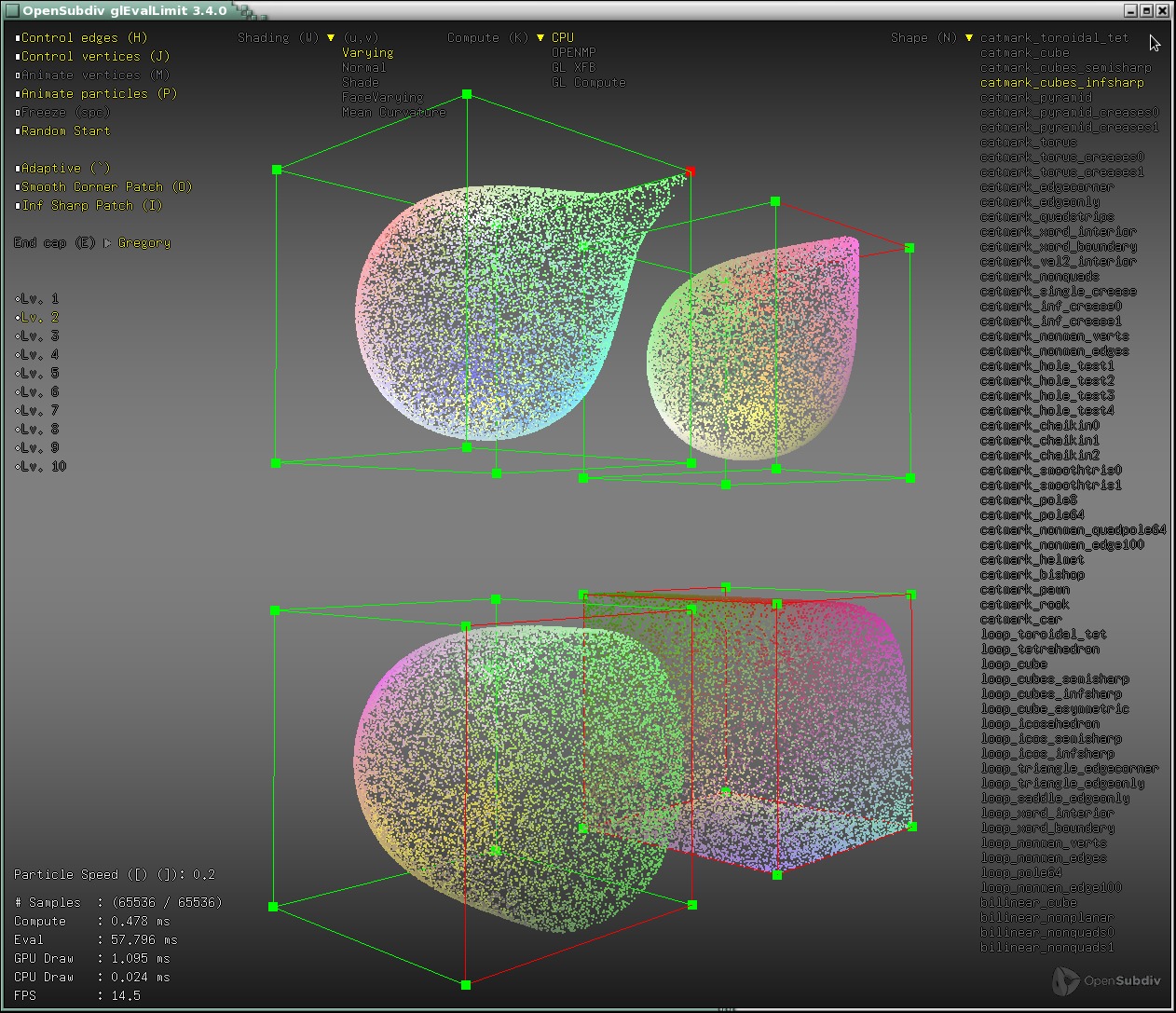 Other examples : glViewer, glFVarViewer, glEvalLimit, glStencilViewer, glPtexViewer, glPaintTest, glShareTopology, dxViewer, dxPtexViewer,