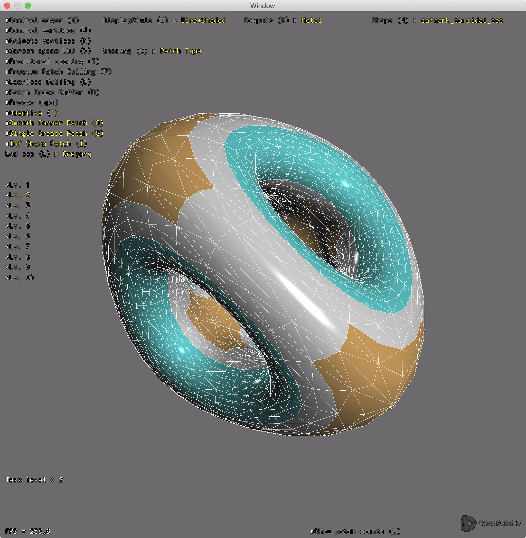 Other examples : glViewer, glFVarViewer, glEvalLimit, glStencilViewer, glPtexViewer, glPaintTest, glShareTopology, dxViewer, dxPtexViewer,