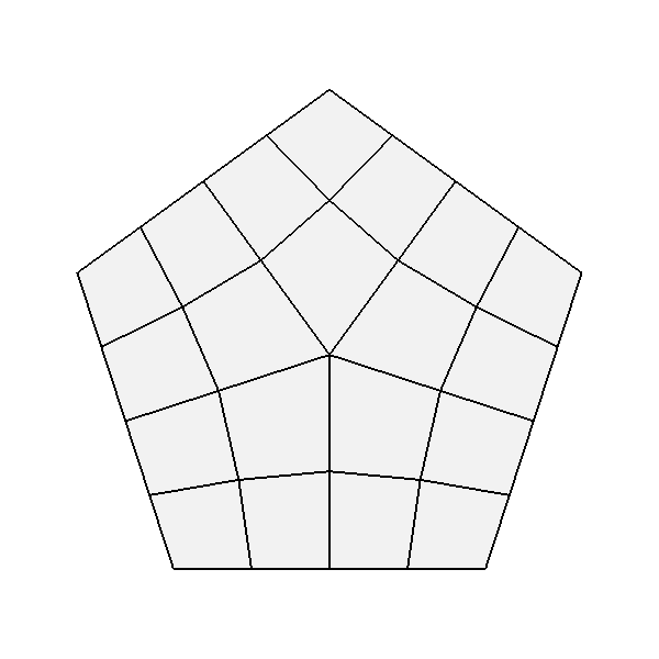 | Non-uniform tessellation of a quadrilateral, triangle and 5-sided face with various outer and inner rates. | |