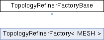 TopologyRefinerFactoryBase is the base class for subclasses that are intended to construct TopologyRefiners directly from meshes in their native representations. The subclasses are parameterized by the mesh type <class MESH> and are expected to inherit the details related to assembly and validation provided here that are independent of the subclass' mesh type.