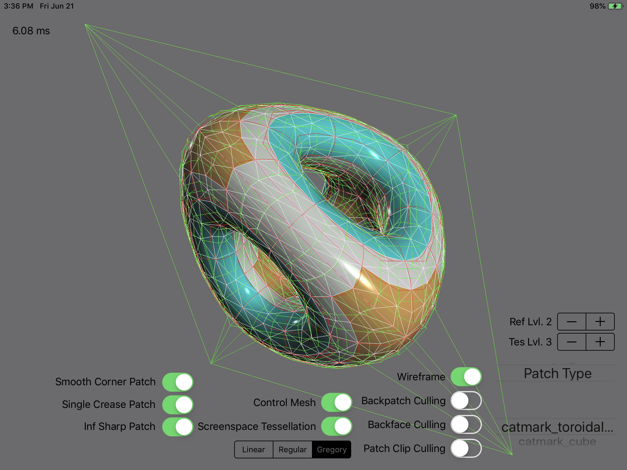 mtlViewer is a stand-alone application that showcases the application of uniform and feature adaptive subdivision schemes to a collection of geometric shapes. Multiple controls are available to experiment with the algorithms.